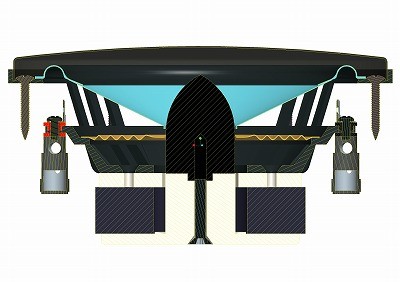 ベリリューム振動板のコーテイングをせずに無垢のベリリュームとしています。