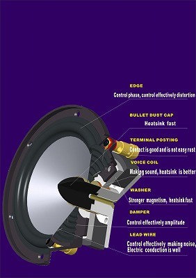 As for cone type woofer, high pass threshold frequency is decided weight of the diaphragm and the mass of voice coil, by stiffness of the diaphragm point. ”Qurino” not to be to process simply as woofer,” because it develops, full-range speaker” as high pass threshold frequency is designed in order to become very high.